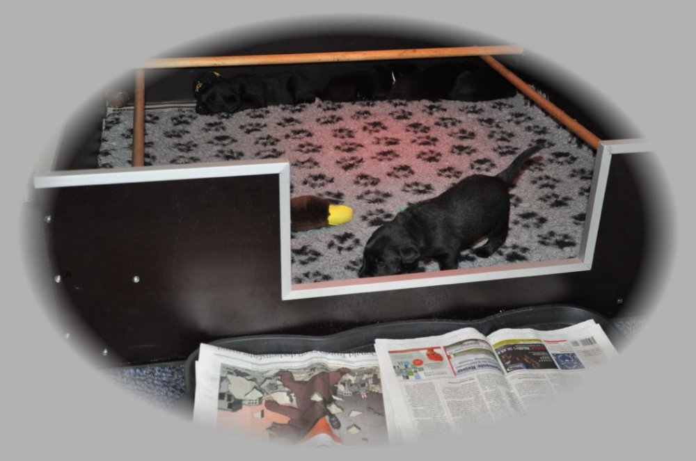 Hvalpene en nu begyndt at være ude af hvalpegården i dagtimerne, og har nu hele køkkenet og gangen.