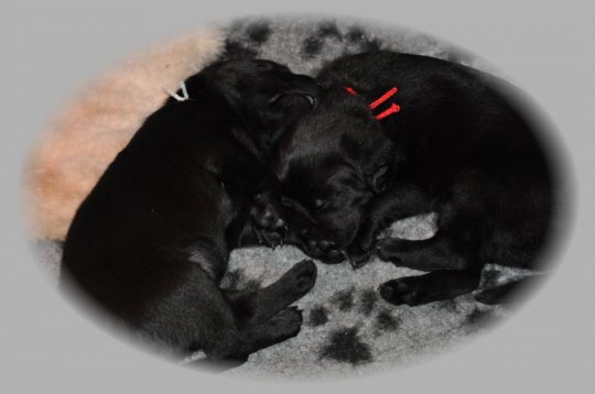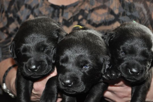 Kuldet gav 6 levende hvalpe. 3 sorte hanner og 3 sorte tæver.